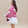 Handmade Crochet Cardigan: Pink Roses Chunky Cropped Cotton Blend