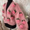 Handmade Wool Strawberry Knit Cardigan – Oversized Chunky Sweater